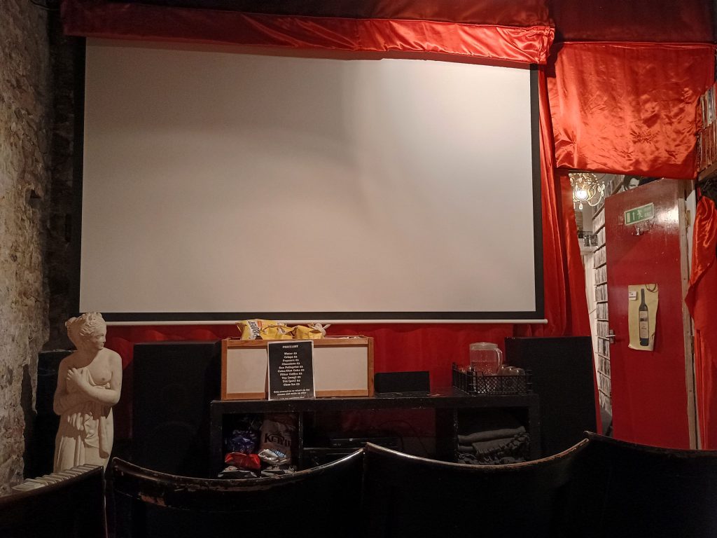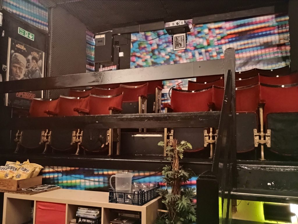 You can choose to view the film you have hired in one of the two cinemas, which are both very cosy with mostly comfy seats, in addition to the odd corner seat. Both the cinema screens have their own names – The Videodrome is the larger of the two and can hold comfortably 10, or 18 max. The Kino is the smaller one, which has been decked out with a Twin Peaks theme and can house up to 8 people, and is the screen used for the ‘couples’ evening screening (for up to 3 people!?!).