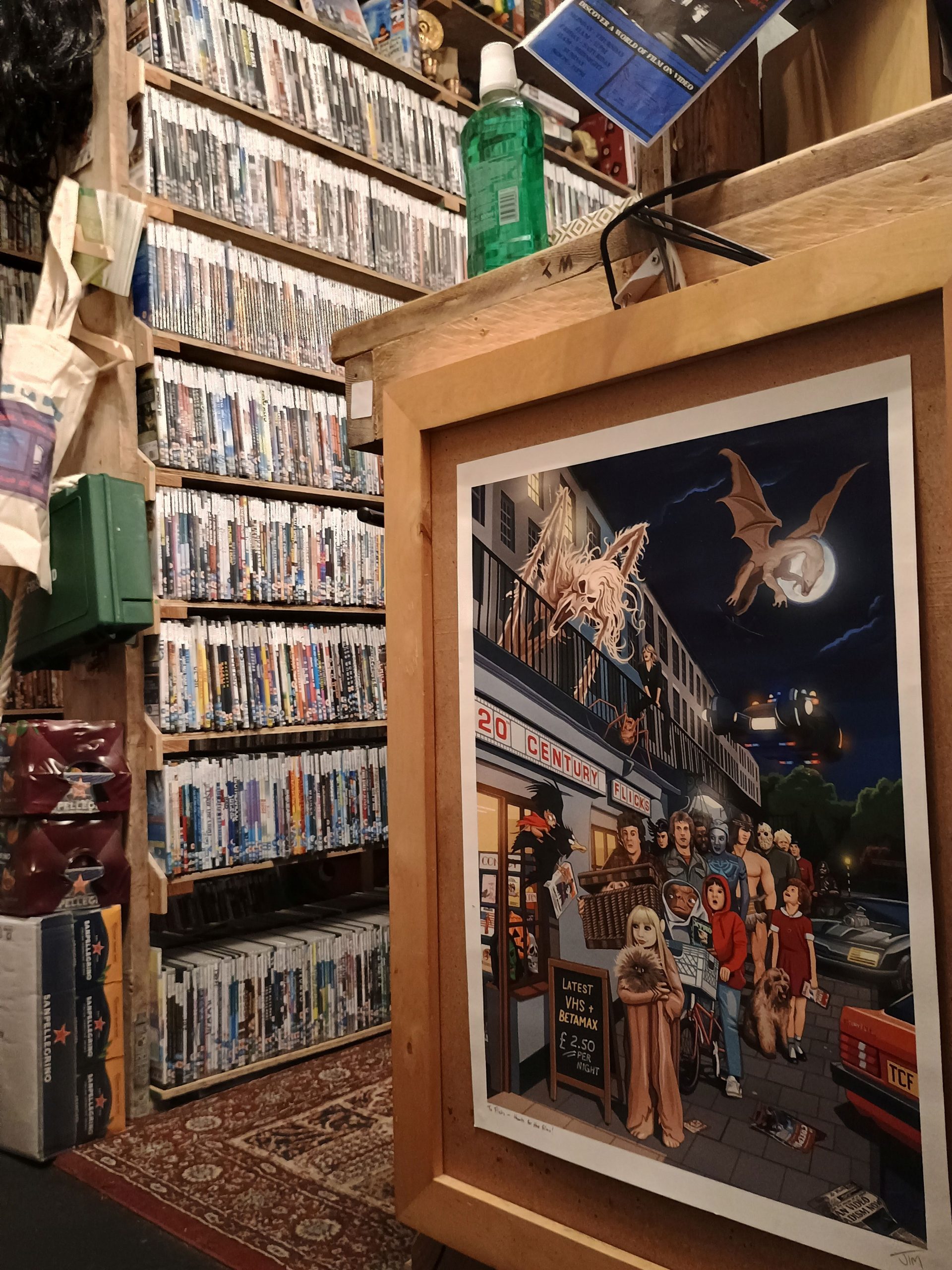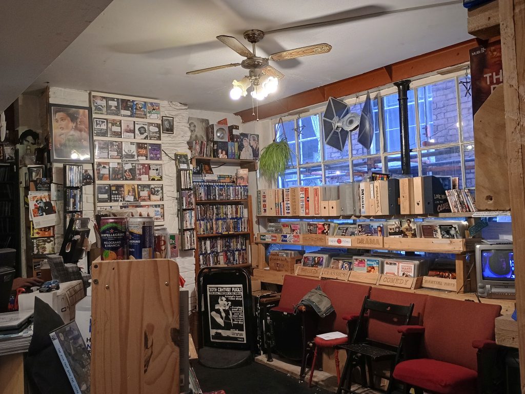 The shop itself is bijou and has a cool vibe emanating as soon as you enter. It has DVDs, Bluerays and even 3000 VHS films in every available nook and cranny, which is quite something to see in person.